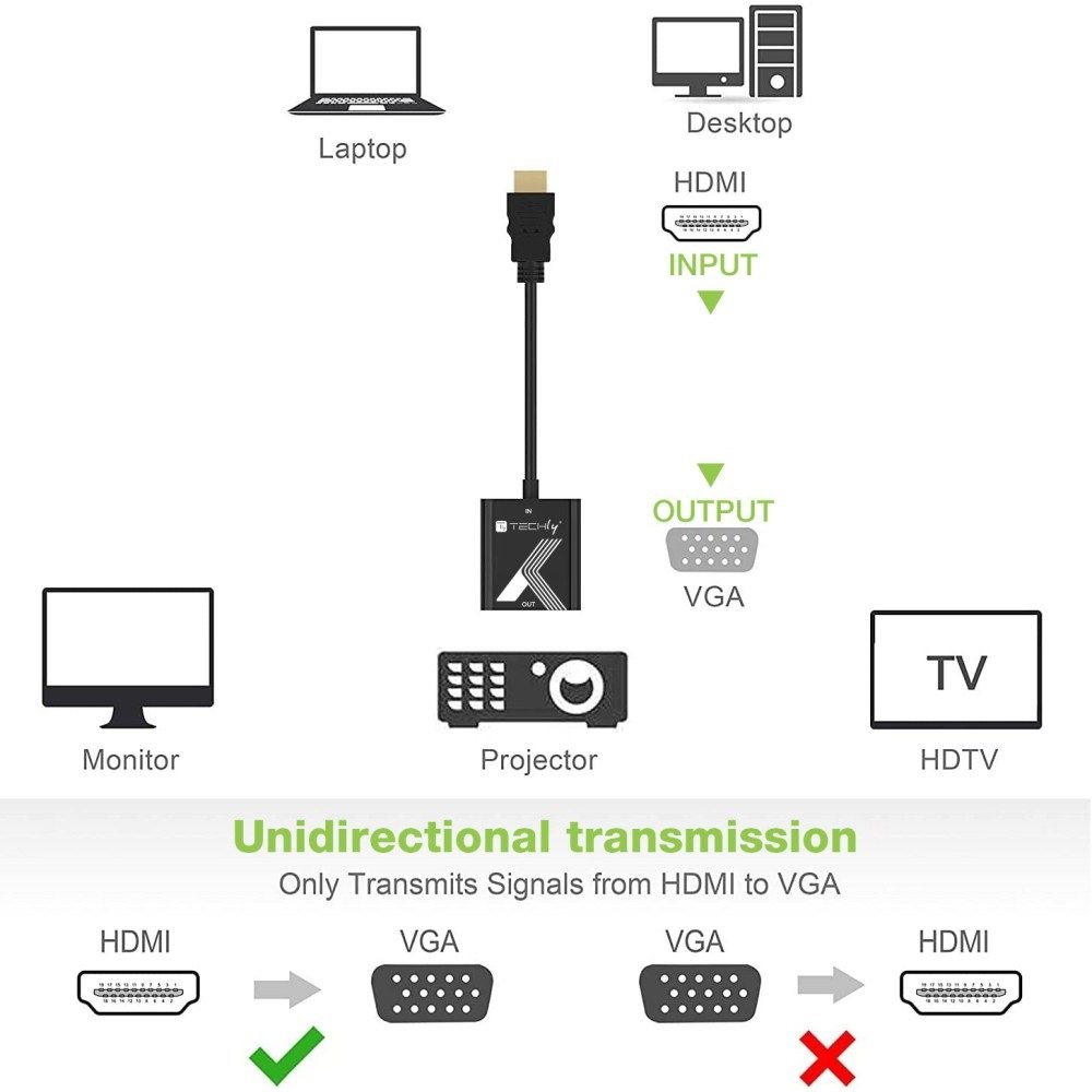 Adapter HDMI Techly IDATA HDMI-VGA2P, P/N: 361902 – Konwerter Sygnału Przejściówka HDMI – VGA D-Sub 1920x1200 przy 60Hz M/F
