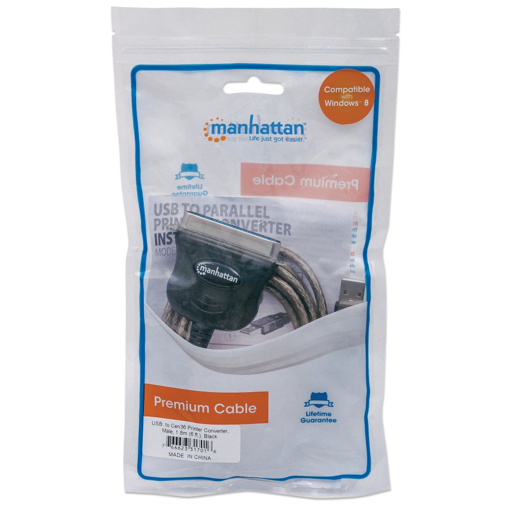 Adapter USB Portu Równoległego Centronics 36-pin Manhattan 317016 obsługuje komunikację dwukierunkową USB do portu równoległego oraz portu równoległego do USB, dzięki czemu jest idealnym rozwiązaniem aby podłączyć drukarkę z 36-pinowym portem Centronics do komputera lub notebooka poprzez złącze USB.