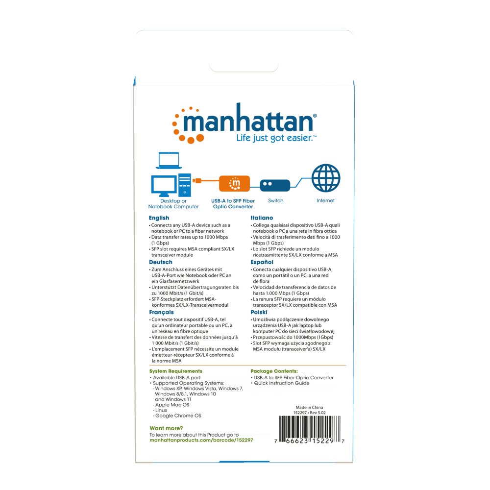 Manhattan 152297 – Konwerter USB-A 3.2 Gen1 na Slot SFP dla Modułu Optycznego