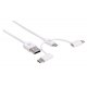 - Oferuje trzy różne złącza w jednym poręcznym kablu USB: Lightning, USB-C oraz Micro-USB