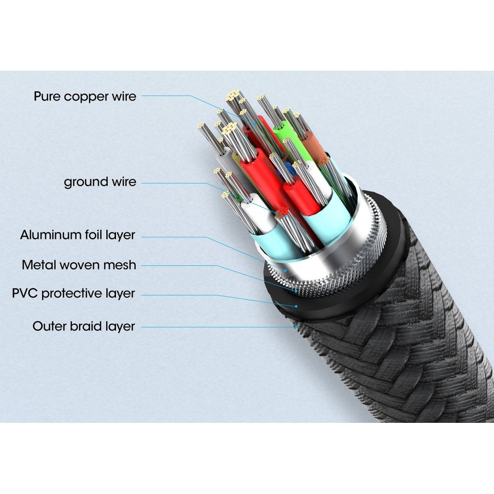 - Materiał zewnętrzny kabla: powłoka ochronna PVC, nylonowy oplot