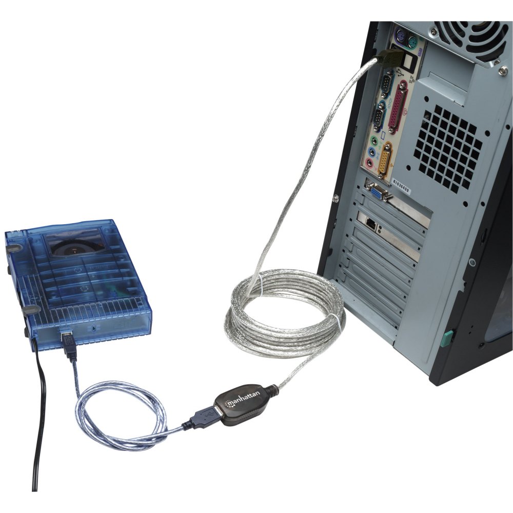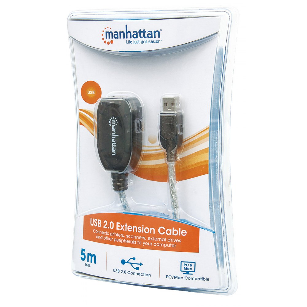Przedłużacz USB Manhattan 519779 – Aktywny Kabel Przedłużający USB 2.0 A-A M/F 5m, Aktywne Wzmocnienie Sygnału USB
