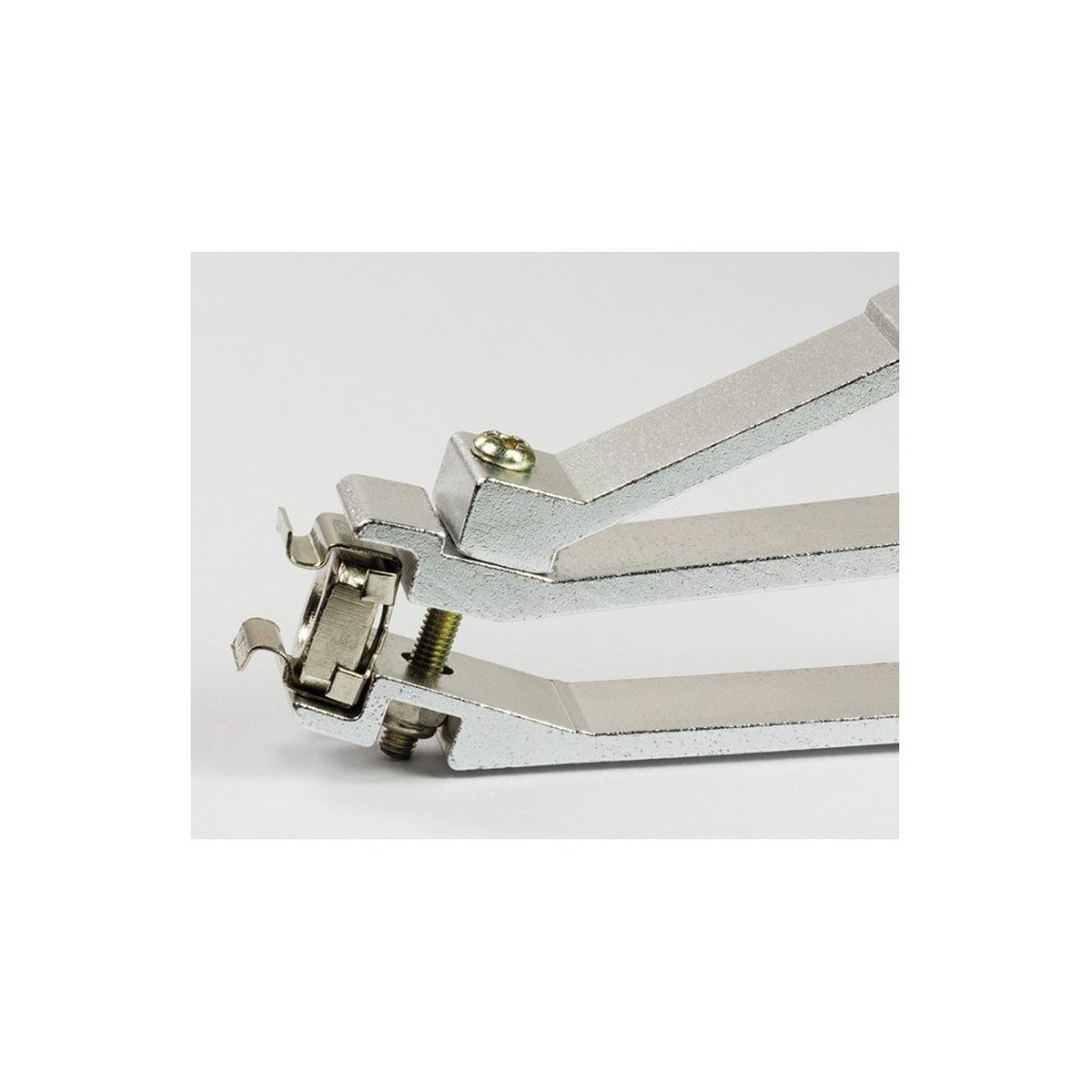 - Narzędzie wyposażone jest w śrubę regulacyjną pozwalającą na jego dopasowanie do różnych rozmiarów nakrętek