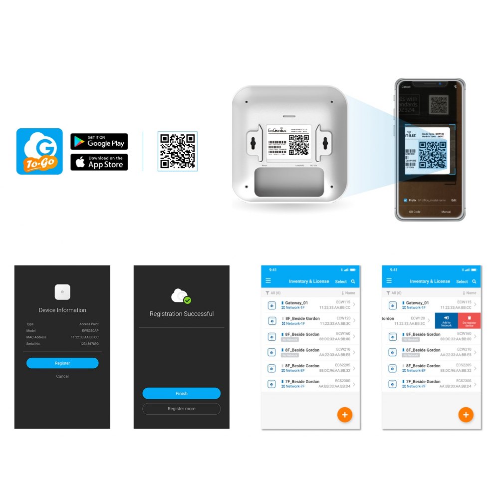 - Darmowa aplikacja na urządzenia mobilne EnGenius Cloud To-Go umożliwia zarządzanie w chmurze z dowolnego miejsca na świecie z dostępem do sieci Internet