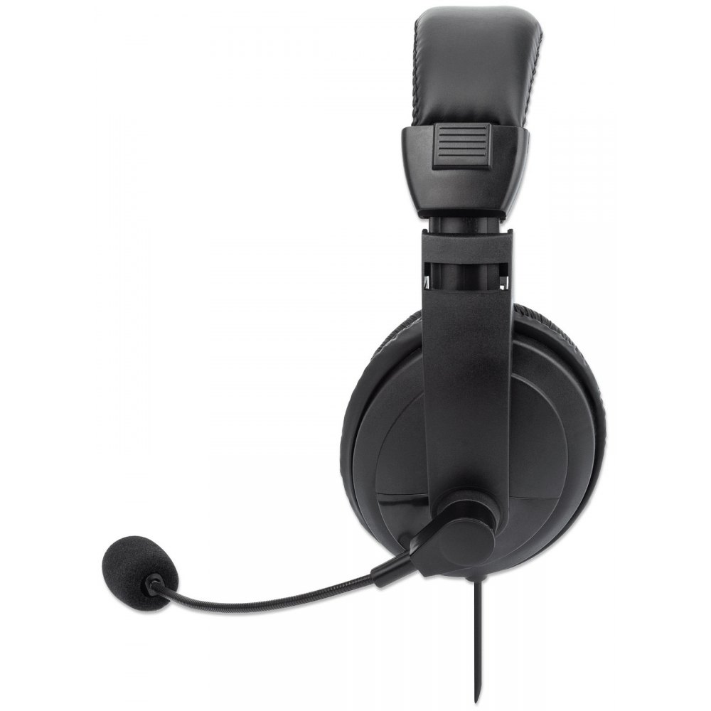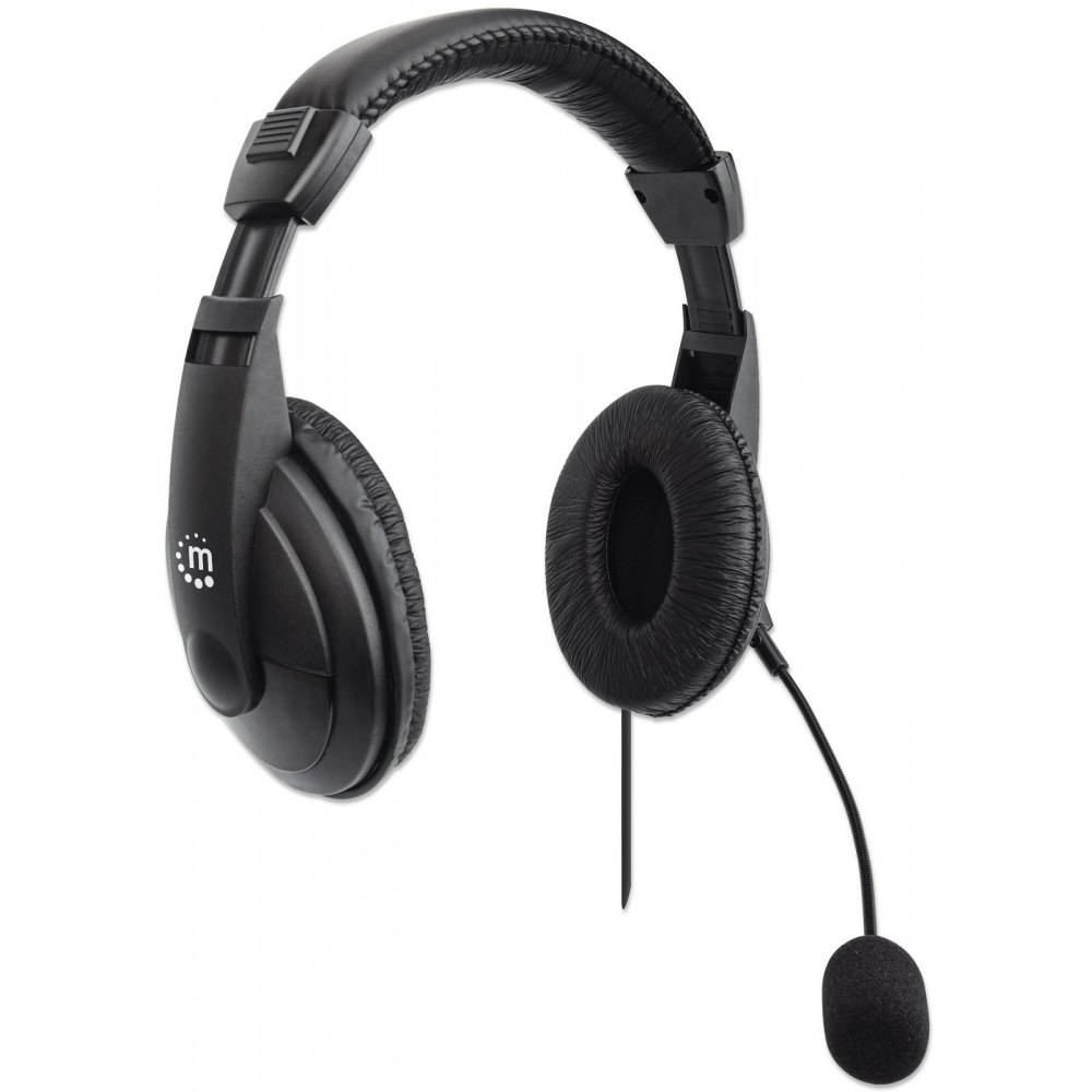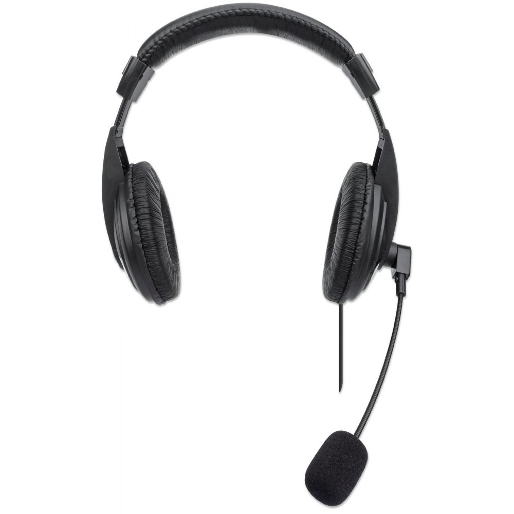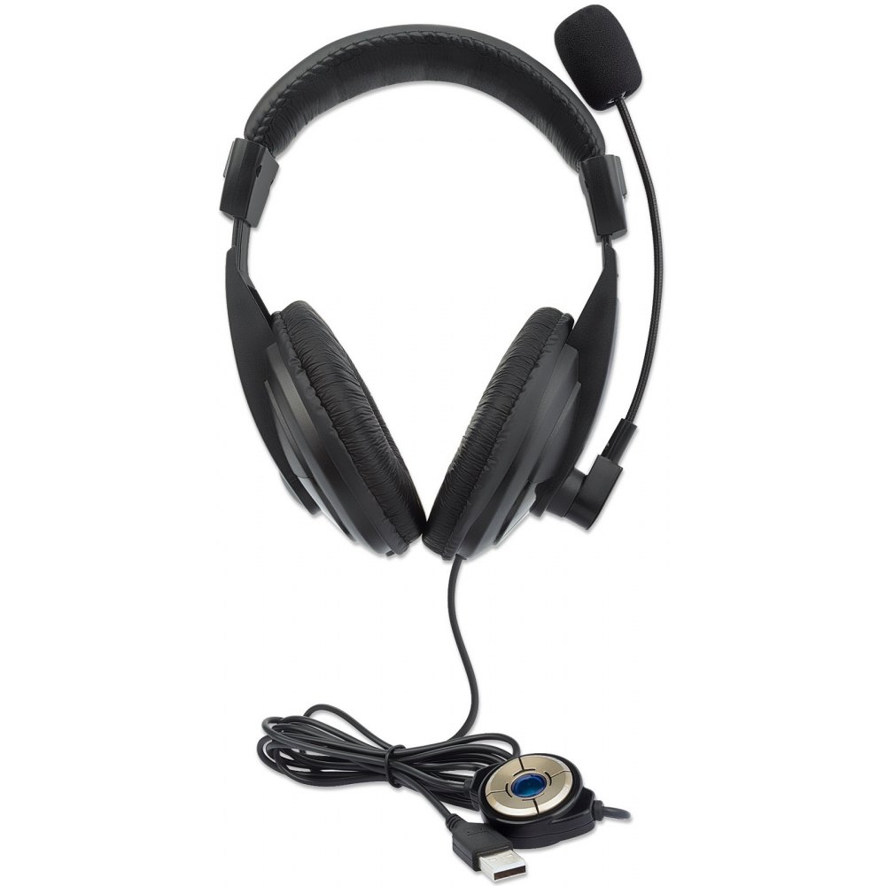 Słuchawki USB Manhattan 179843 – Zamknięte Słuchawki Stereo USB z Mikrofonem, Regulacją Głośności i Wyciszenia na Kablu