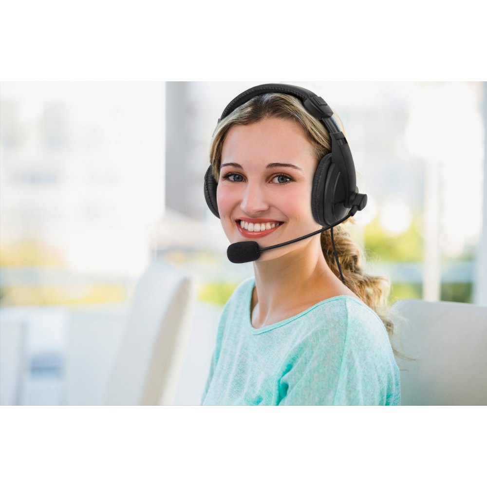 Zamknięte Słuchawki Stereo USB Manhattan 179843 są niezwykle lekkie, wyposażone zostały w regulowany pałąk oraz wygodne i miękkie poduszki nauszne gwarantujące komfort nawet przez długie godziny pracy. Regulowany wysięgnik przymocowany do lewej słuchawki umożliwia szybką zmianę położenia mikrofonu, aby uzyskać lepsze przechwytywanie dźwięku oraz odsunięcie go od ust po skończonej rozmowie.