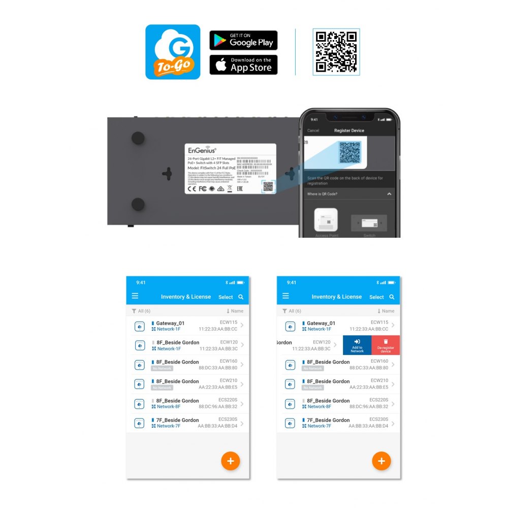 - Darmowa aplikacja na urządzenia mobilne EnGenius Cloud To-Go umożliwia zarządzanie w chmurze z dowolnego miejsca na świecie z dostępem do sieci Internet