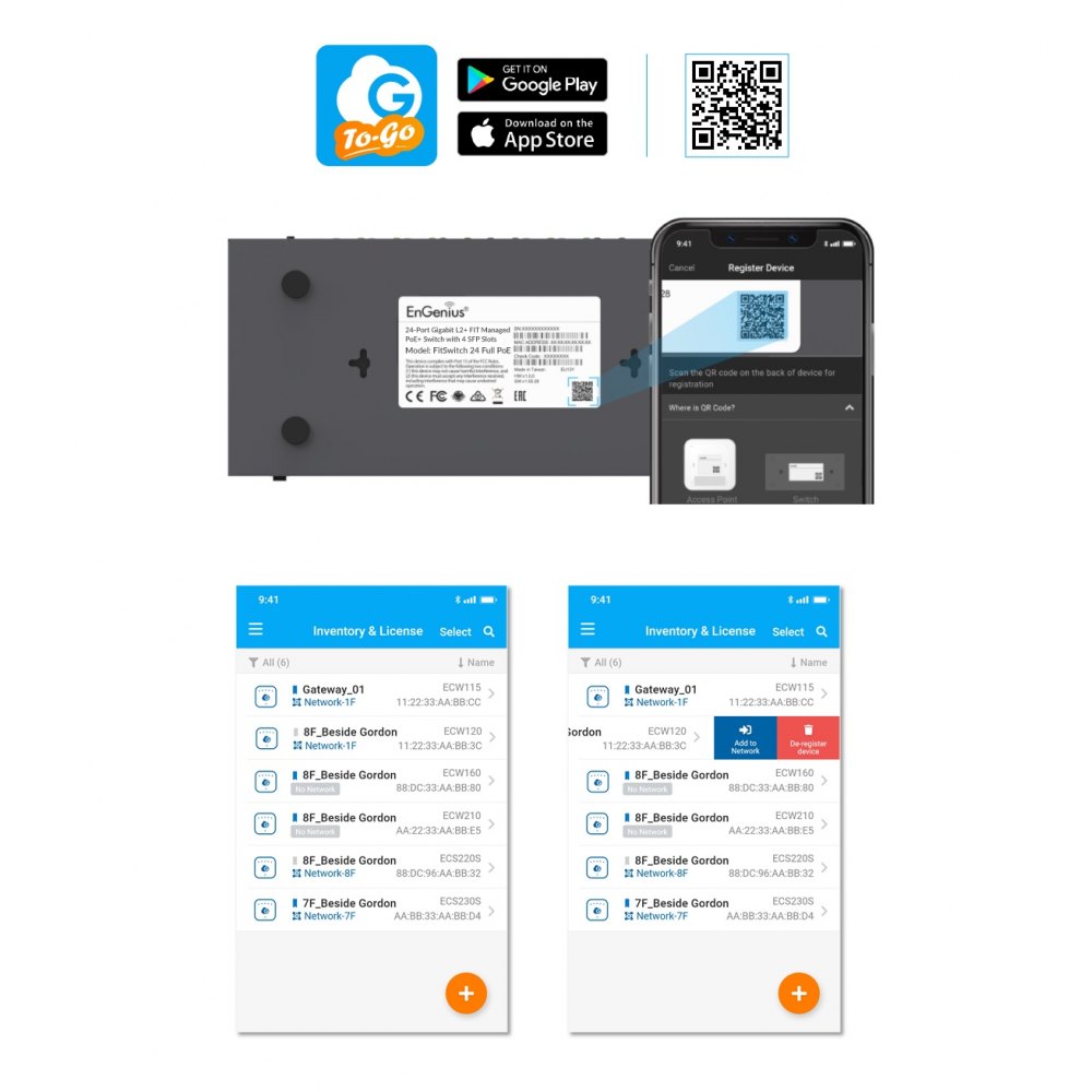 - Darmowa aplikacja na urządzenia mobilne EnGenius Cloud To-Go umożliwia zarządzanie w chmurze z dowolnego miejsca na świecie z dostępem do sieci Internet