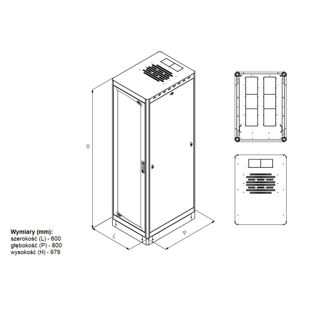 - Zmontowana szafa stojąca Rack 19" 20U 600x800