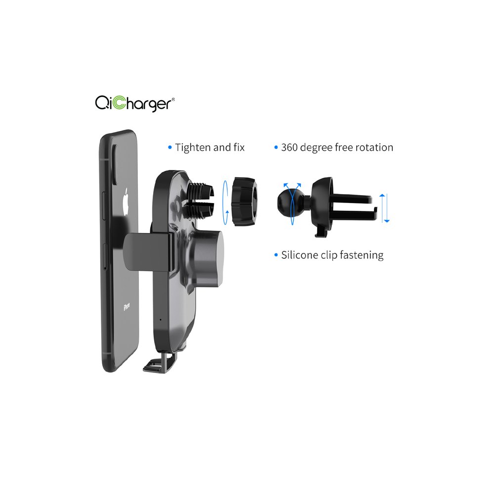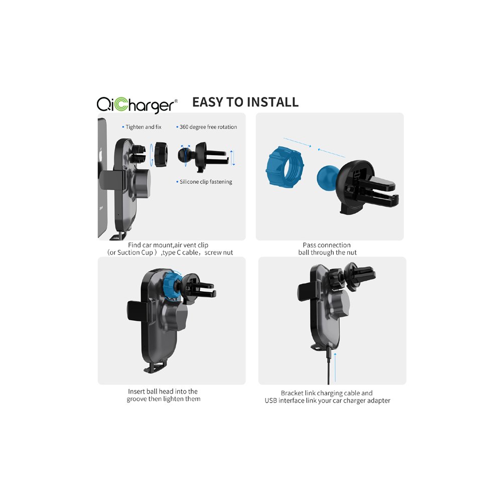 - Automatyczny uchwyt samochodowy z ładowarką Qi
