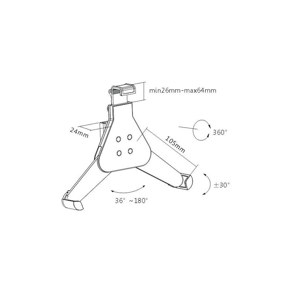 - Regulacja rozstawu dwóch nóżek montażowych pod kątem 36° do 180° (względem siebie)