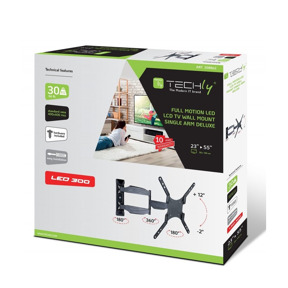 Techly ICA-PLB 172L, PN: 308886 - Obrotowy Uchwyt Ścienny do Telewizora TV LED/LCD 40"-80" 50kg Full-Motion