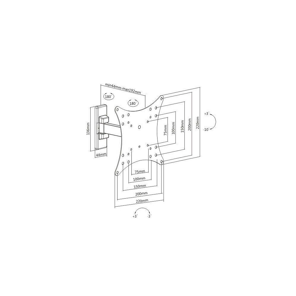 - Regulacja odległości od ściany: 44 – 192 mm