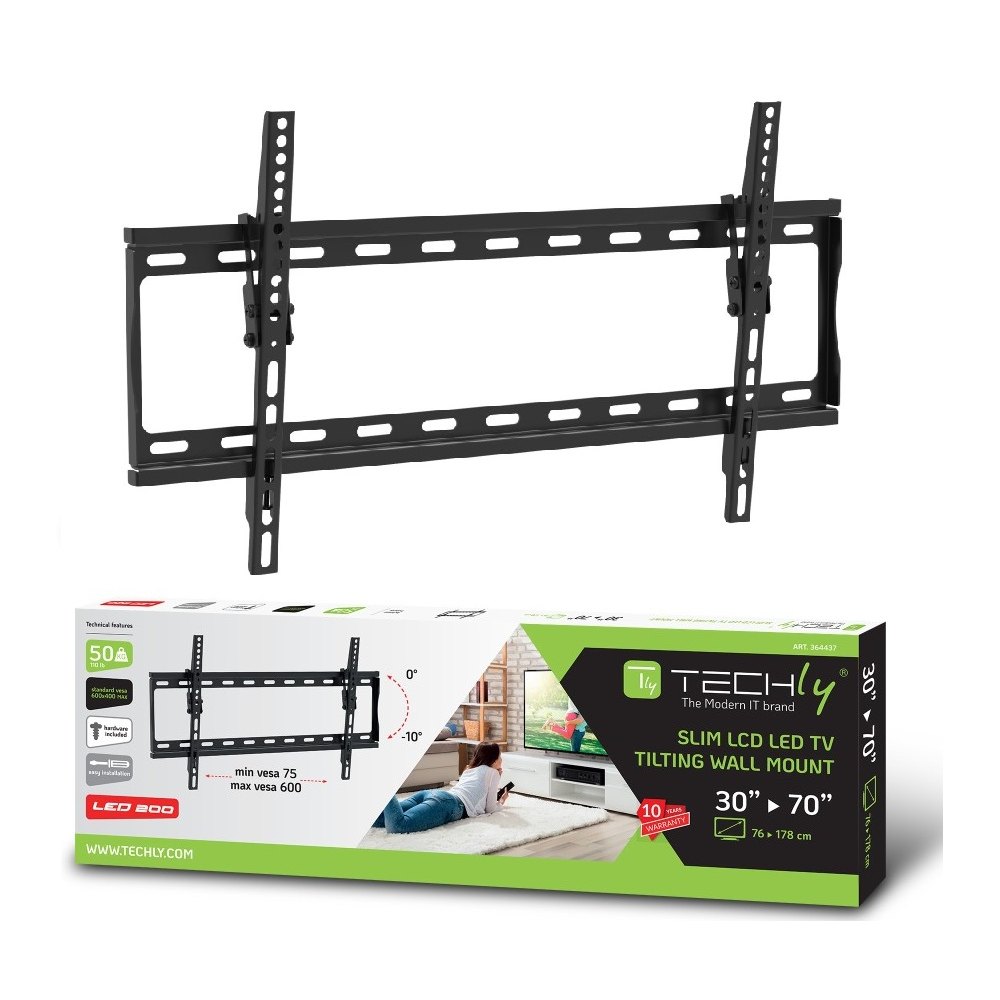 Wieszak TV Techly ICA-PLB 261L, P/N: 364437 – Uchwyt Ścienny do Telewizora 30” - 70” LED/LCD do 60kg, Uchylny 0°/10°, Slim 25mm