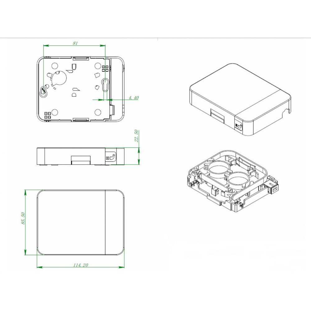 - EFB-Elektronik P/N: FTTH-BOX-IN-3 - gniazdo klienckie FTTH wewnętrzne na 1 adapter SC Simplex lub LC Duplex lub E2000®, z ochroną złącza
