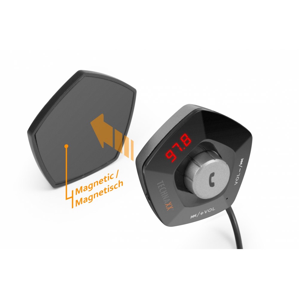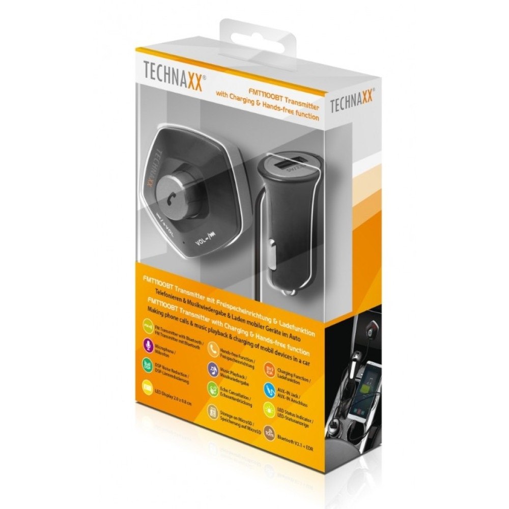 Technaxx FMT1100BT – Transmiter FM + Zestaw Głośnomówiący Bluetooth + Samochodowa Ładowarka USB + Odtwarzacz MP3 MicroSD + Wyświetlacz LCD
