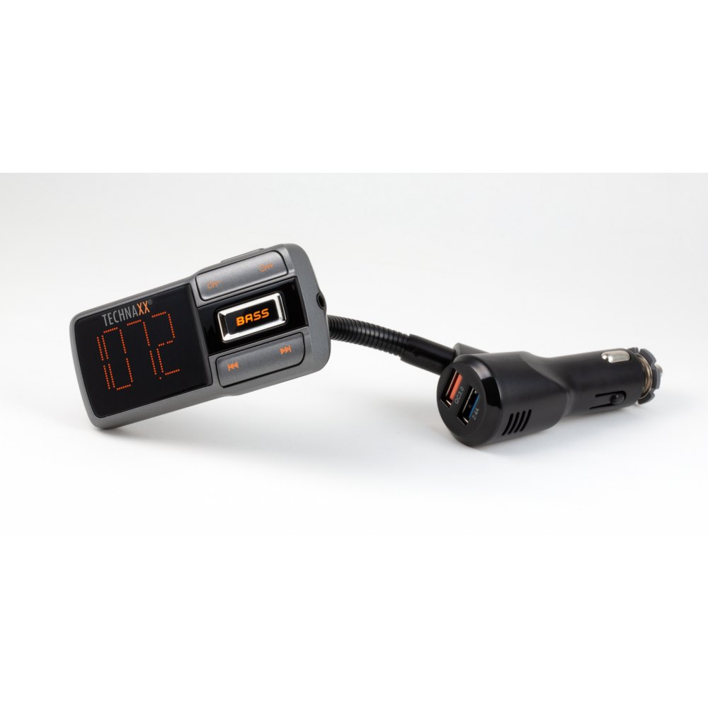 Technaxx FMT1350BT – Transmiter FM + Zestaw Głośnomówiący Bluetooth + Samochodowa Ładowarka 2x USB QC 3.0 / 5V 2.4A + Odtwarzacz MP3 MicroSD + Wyświetlacz LCD + System Bass Booster
