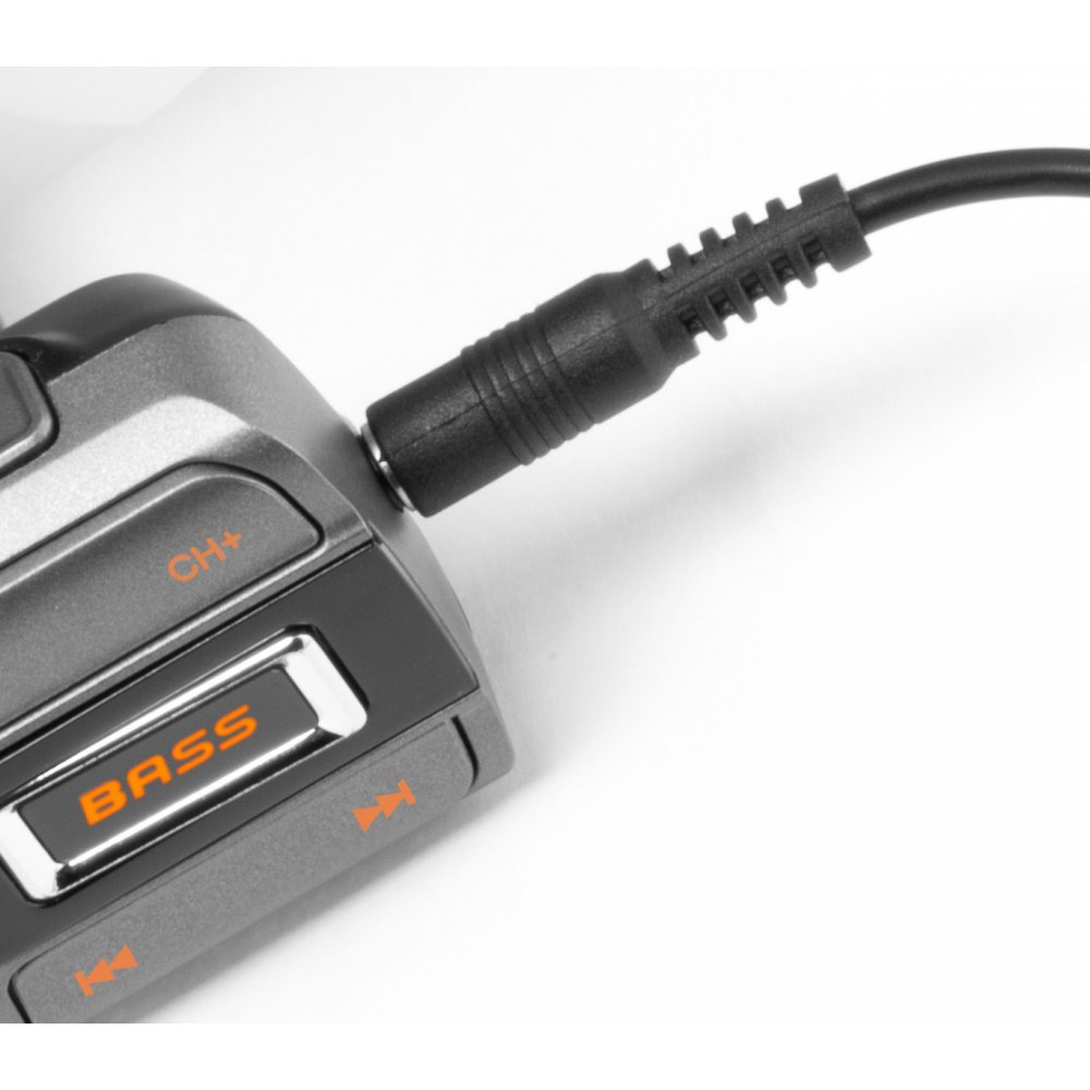 - Możliwość podłączenia transmitera kablem audio do portu AUX-IN radia samochodowego zapewnia lepszą jakość dźwięku