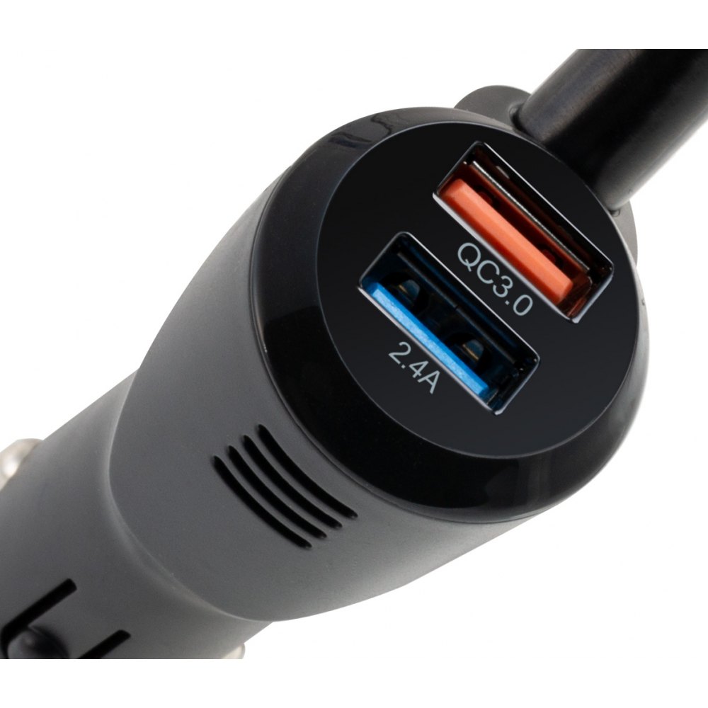 - Dwuportowa ładowarka USB z obsługą technologii QC 3.0 na jednym porcie oraz napięcia 5V 2.4A na drugim