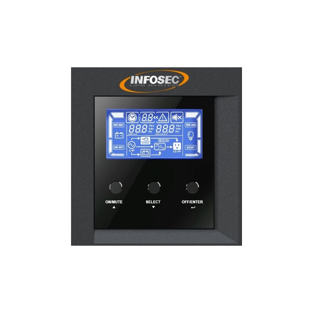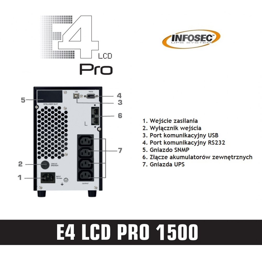 Zasilacz UPS Infosec E4 LCD Pro 1500, P/N: 67274 – profesjonalny zasilacz awaryjny UPS 1500 VA, 4 gniazda IEC, do 30 min.